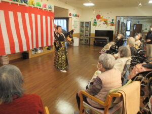 今年は、ボランティアの「楽芸クラブ」の皆様が、安来節・舞踊で新年会を盛り上げて下さいました。