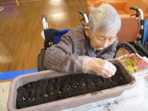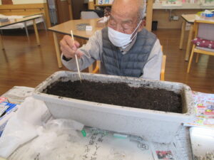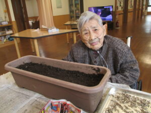 本日は、ひまわりの種を蒔きました。
