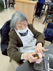 職員の手作りプレゼントに感動していました。