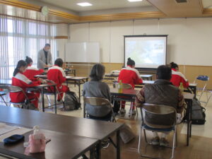 午前は認知症についての座学や高齢者の疑似体験を行いました。