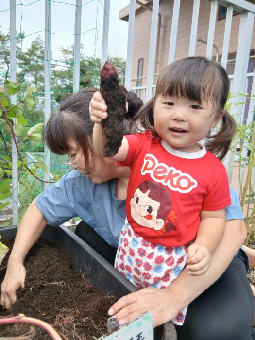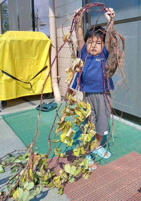 今年は酷暑だったため、サツマイモを早めに収穫したほうがいいらしいと聞いて収穫してみました。小さいお芋ばかり出てきて(いもむしもたくさん…)不安が大きくなる中、大きなおいもが出てきました!虫食いばかりだけど、大小10個程のおいもが収穫できました。スイートポテトにしておいしく食べました!