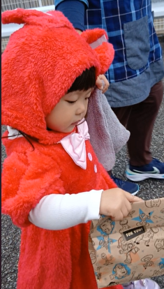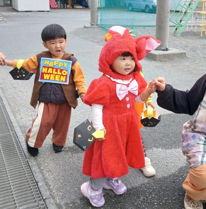 ご家庭より持ってきていただいた衣装を着て、かわいく変身!そのまま法人内をお散歩しました。
