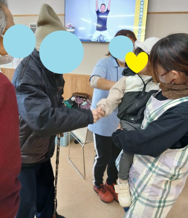 良いお天気のこの日。広い法人内をお散歩しました。ふようデイにある“ふよう神社”にお参りをしていると、中にいた職員さんが声をかけてくれ、デイの中におじゃまできました。ドキドキしながらも握手をしたり、お話したりしました。素敵な交流になりました。